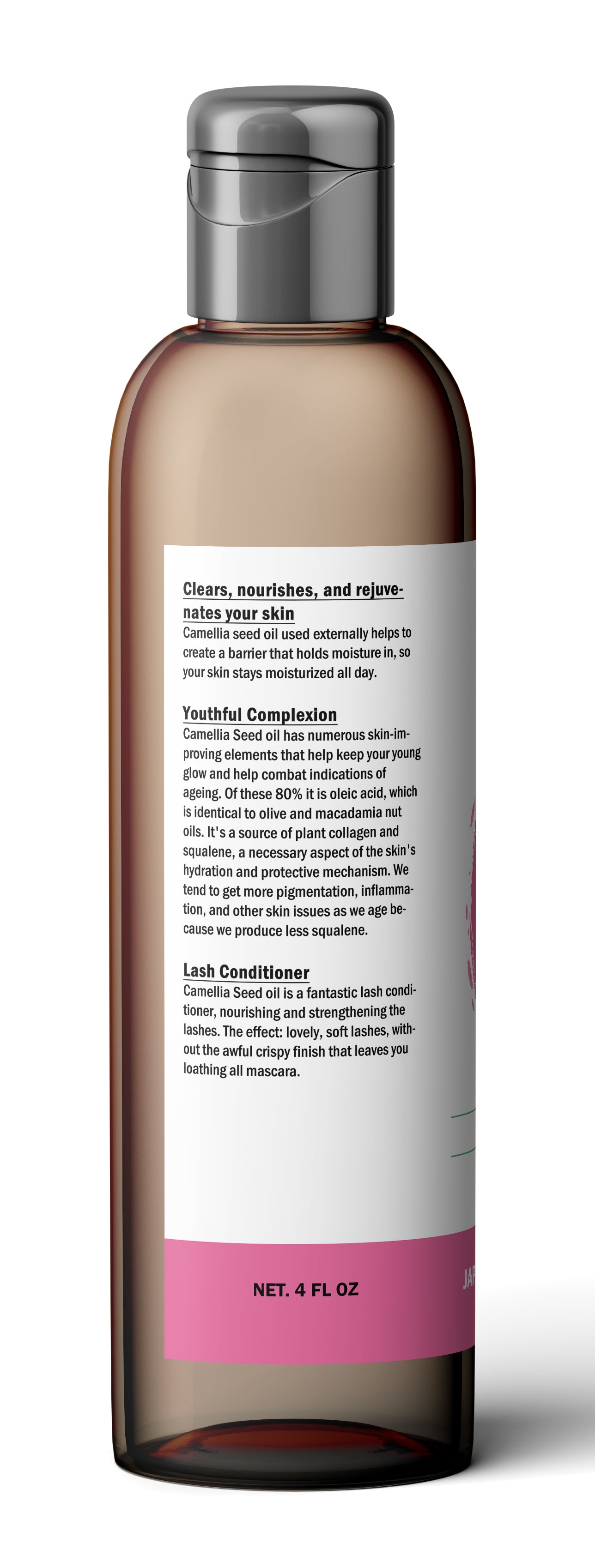 Clears, nourishes, and rejuvenates your skin: Camellia seed oil used externally helps to create a barrier that holds moisture in, so your skin stays moisturized all day.