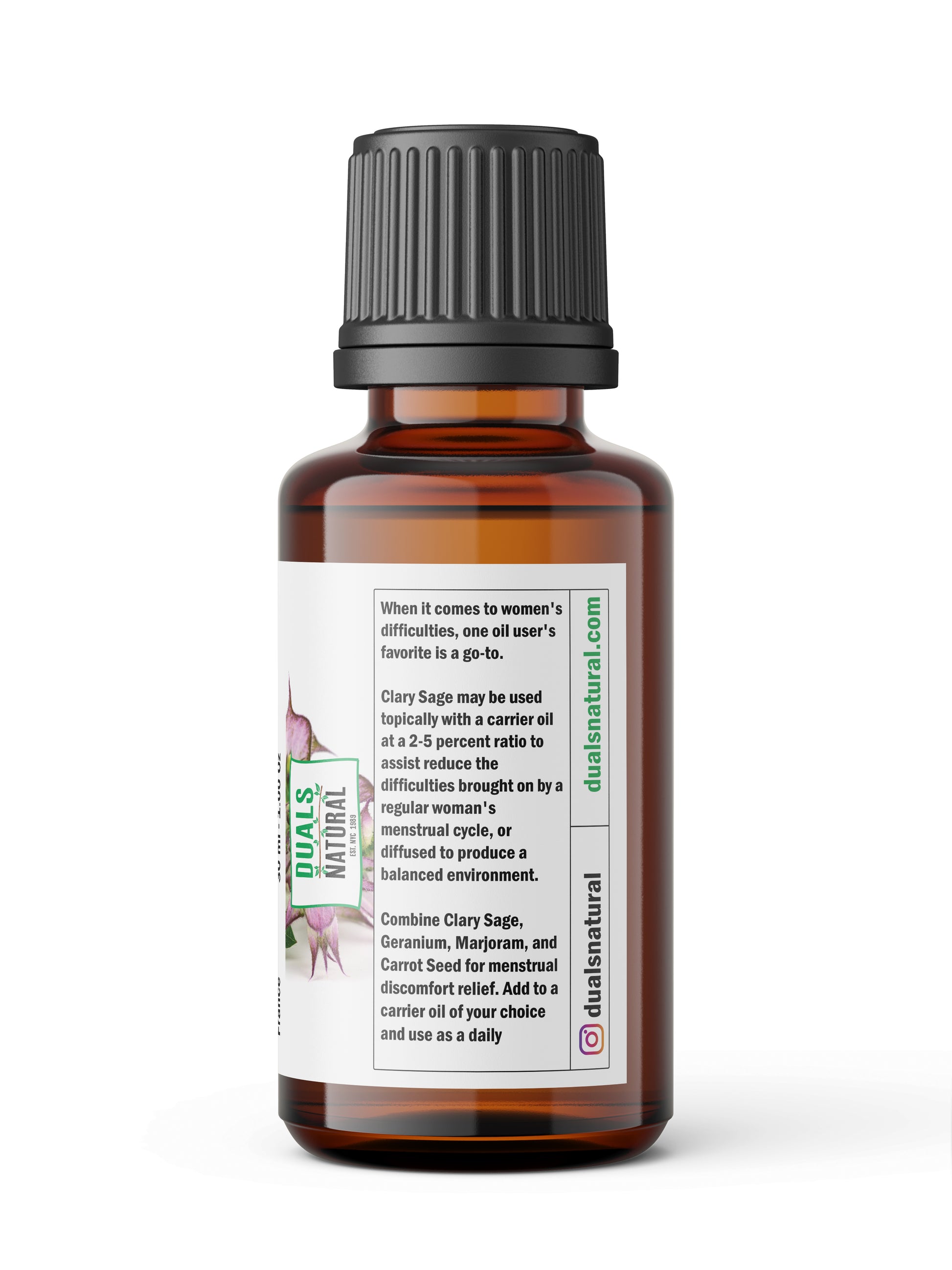 Clary Sage may be used topically with a carrier oil at a 2-5 percent ratio to assist reduce the difficulties brought on by a regular woman's menstrual cycle, or diffused to produce a balanced environment.
